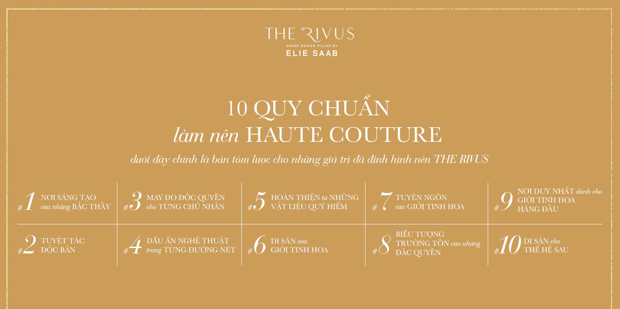 Lần đầu tiên tại châu Á, âm hưởng nghệ thuật Haute Couture được mang vào không gian sống của Khu dinh thự THE RIVUS bởi chính đôi bàn tay huyền thoại ELIE SAAB cùng những kiến trúc sư, chuyên gia bậc thầy trong lĩnh vực thiết kế.